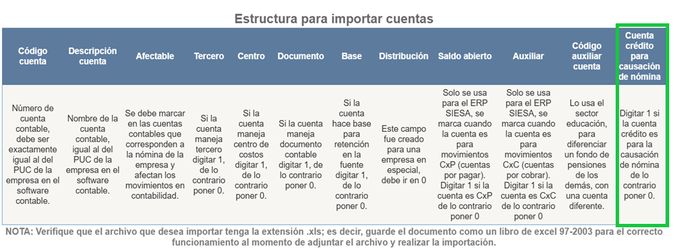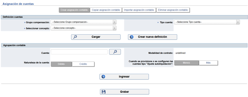 Se crea un nuevo campo en la pantalla donde permite asignarle una marcación a la cuenta de la causación de la nómina. Esto con el fin de poder visualizar las cuentas exactas para selección en la pantalla de definición contable. La marcación existirá tanto por pantalla como por importación.