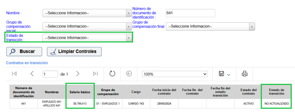Remuneración/Nómina/Informes Estándar/Contratos/Contratos en transición