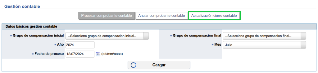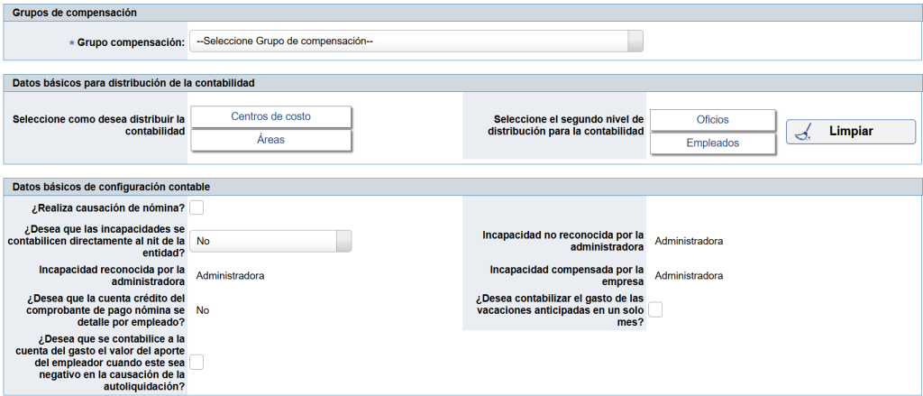 • En caso de solo tener un grupo de compensación, no se mostrará lista desplegable, sino que se cargará el grupo de compensación sin necesidad de seleccionar.