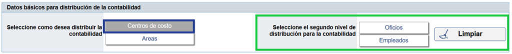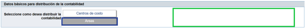 a. Si la agrupación contable es Centro de costos: Habilita los campos que se resaltan en verde.