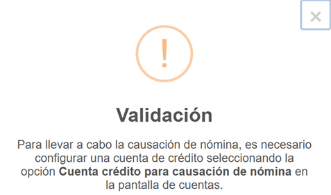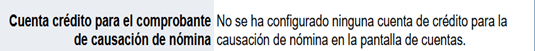 Cuando no exista marcación en la cuenta contable para el comprobante de causación de nómina, la pantalla de definición contable mostrará un mensaje indicando esta situación.