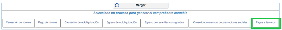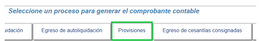 • Para los procesos de Causación autoliquidación, Egreso autoliquidación y Consolidado mensual se oculta el campo periodo ya que no es requerido por ser procesos mensuales, en su lugar se incluyen en la búsqueda de dichos comprobantes el año y el mes.