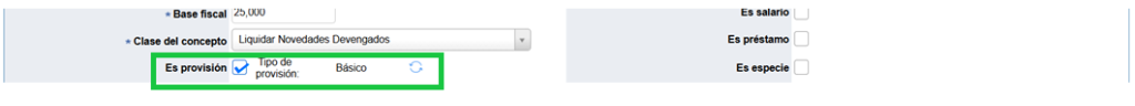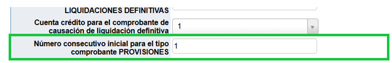 Se condiciona la marcación Es provisión de la pantalla de conceptos para que habilite en la pantalla de definición contable los campos de Número consecutivo inicial para el tipo comprobante PROVISIONES y realizar su respectiva configuración.