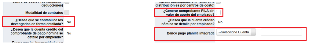 1. Se oculta la etiqueta Banco pago planilla integrada para darle funcionalidad al campo desde la pantalla banco. Y se retira la obligatoriedad de la selección de este campo ya que queda oculto.