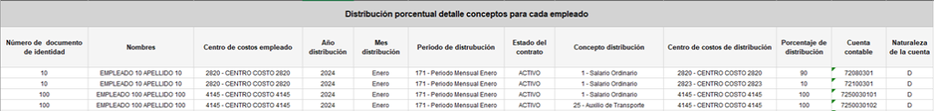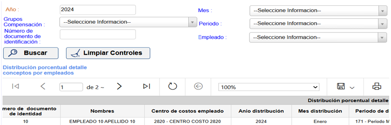 • Corrección de la consulta del informe Distribución porcentual detalle conceptos por empleados ubicado en el nodo de Gestión contable para que permita visualizar información.