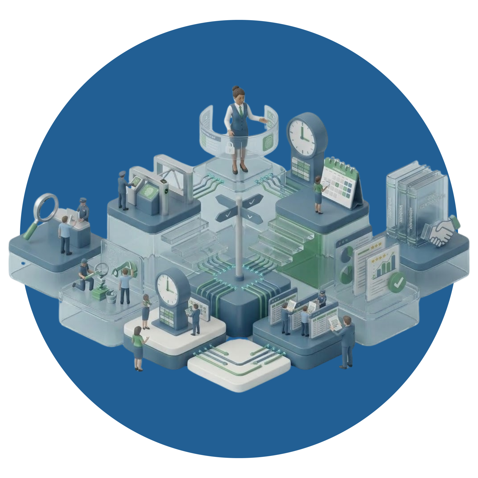 Domina tus jornadas laborales con programación y seguimiento preciso. Centraliza ausentismos y novedades en tiempo real para optimizar recursos y asegurar una liquidación de nómina exacta y sin errores.